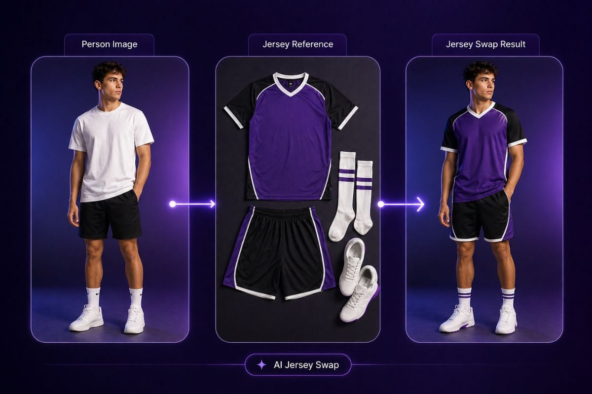 Erhalten Sie mehr Kontrolle über das finale Aussehen, indem Sie ein echtes Outfit-Bild verwenden, anstatt Kleidung nur mit Text zu beschreiben. Mit Bild-zu-Bild-Bearbeitung können Sie Kleidungsdetails wie Farbe, Stoff, Silhouette und Stil auf Ihr hochgeladenes Porträt übertragen. Dies hilft, Outfit-Wechsel-Tests, Kleidungswechsel-Bearbeitungen, Vorschauen für Uniformwechsel, Trikotwechsel-Konzepte und Mode-Styling-Bilder zu erstellen, die spezifischer und nutzbarer sind.