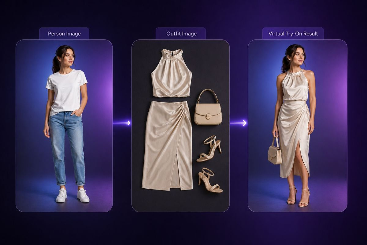 Erstellen Sie realistische Outfit-Vorschauen, ohne ein weiteres Fotoshooting zu arrangieren. Laden Sie ein Personenfoto und ein separates Outfit-Bild hoch, und GoEnhance AI-Bildgenerator hilft, die Zielkleidung natürlich auf die Person zu platzieren. Dies erleichtert es, neue Looks zu testen, Stile zu vergleichen, Modeinhalte vorzubereiten und einfache Kleidungsreferenzen in saubere virtuelle Anprobe-Visuals umzuwandeln.