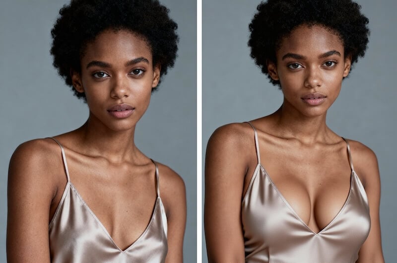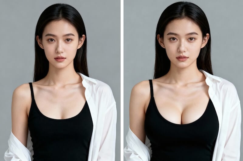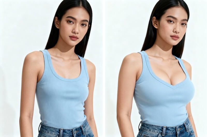 Exporta fotos de aumento de pecho con IA realistas y en alta resolución para redes sociales, portafolios o comercio electrónico. Sin artefactos, sin distorsiones: solo proporciones naturales y elegantes.