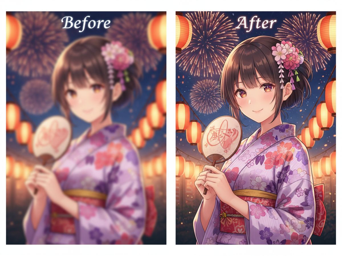 Fondos de pantalla antiguos, capturas de la era DVD y paneles recortados cobran una segunda vida con nuestro upscaler de waifu. Las líneas se ordenan, el banding de color se suaviza y los fondos recuperan profundidad para que el arte clásico de waifu luzca bien en las pantallas actuales, más grandes y más nítidas.