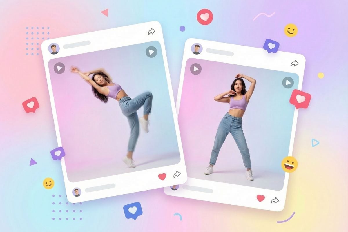 단일 이미지를 댄스 비디오로 변환하면서 얼굴과 의상을 일관되게 유지하세요. 더 많은 장면 모션을 원할 때 이미지에서 비디오로 자연스럽게 연결되며, 빠르고 가족 친화적인 변형을 포함한 AI 댄스 워크플로우에도 적합합니다 — AI 베이비 댄스와 같은. 밈 형식, 프로필 루프 및 "전후" 크리에이터 편집에 적합합니다.