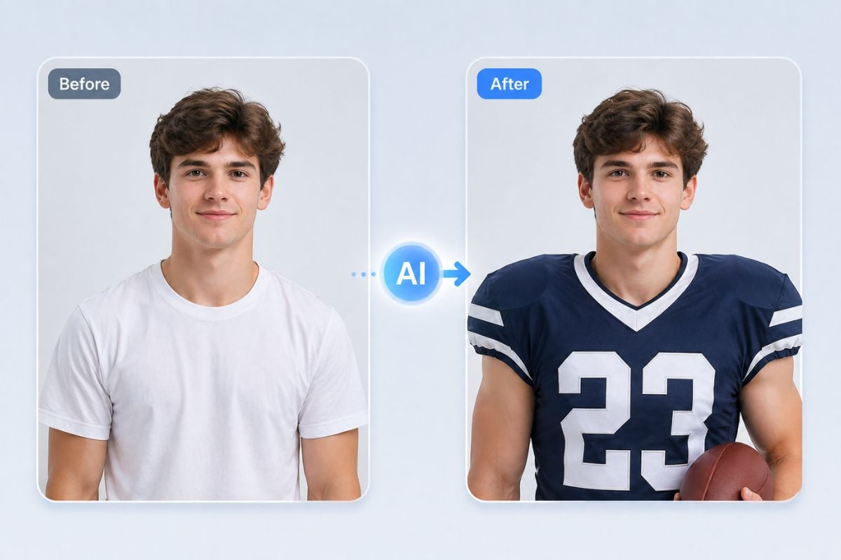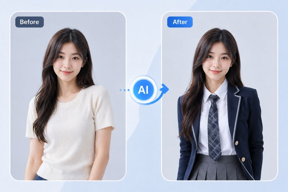 GoEnhance AI를 사용하여 단순한 초상화를 새로운 유니폼 스타일로 변환하세요. 학교 스타일, 팀 복장, 작업복 컨셉, 캐릭터 유니폼 및 테마 아바타 이미지를 수동 사진 편집 없이 생성하세요.
