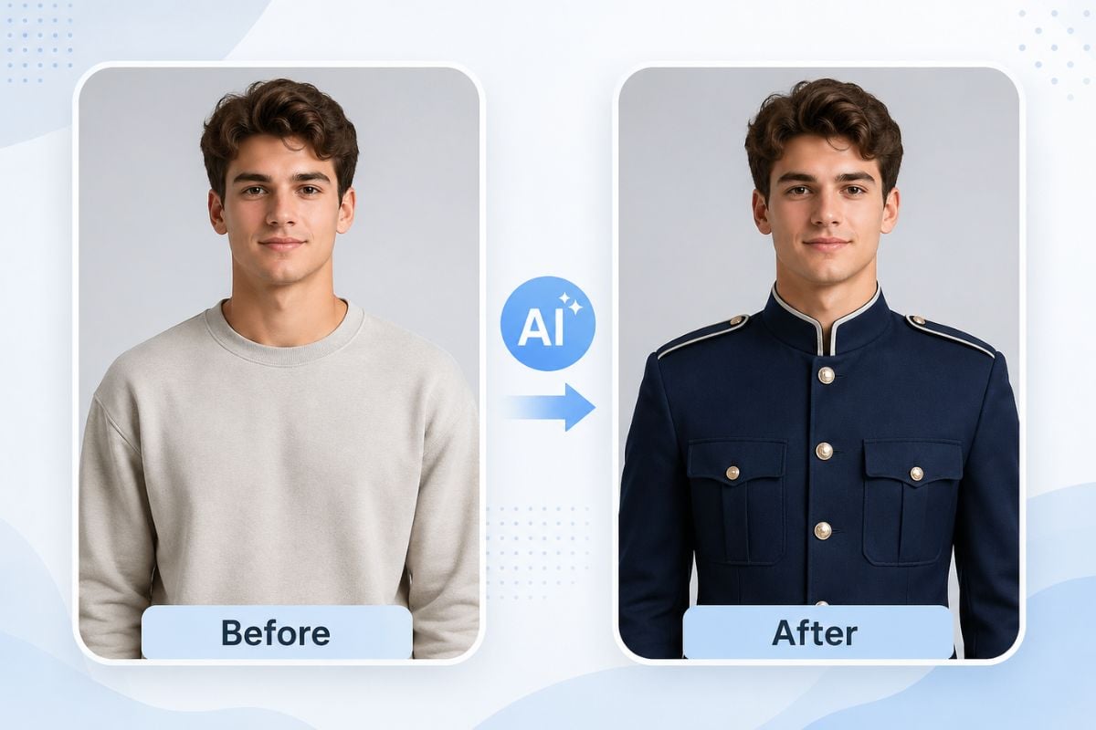 자신의 사진으로 새로운 유니폼 스타일을 시도하세요. 이미지를 업로드하고 학교 유니폼, 사무실 복장, 스포츠 유니폼, 군대 스타일, 의료 유니폼, 셰프 코트, 파일럿 복장 등을 간단한 AI 유니폼 생성기로 만들어보세요.