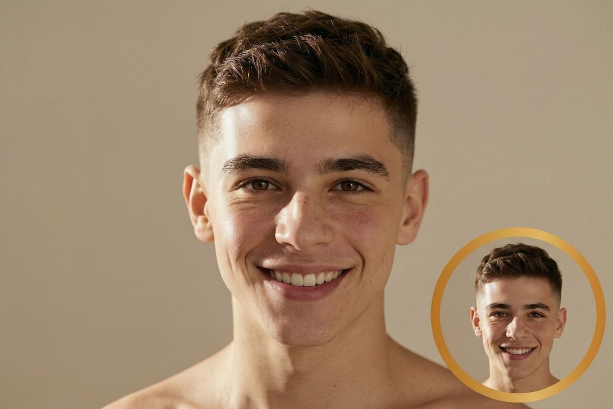 헤어라인, 얼굴형, 전체 비율을 쉽게 읽을 수 있도록 자연광에서 정면 사진으로 시작하세요.