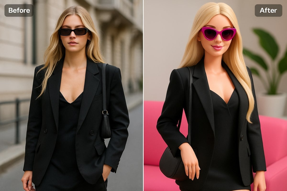 This process is more than a simple effect; the AI image generator intelligently reconstructs your image to produce a truly authentic AI-generated Barbie doll.