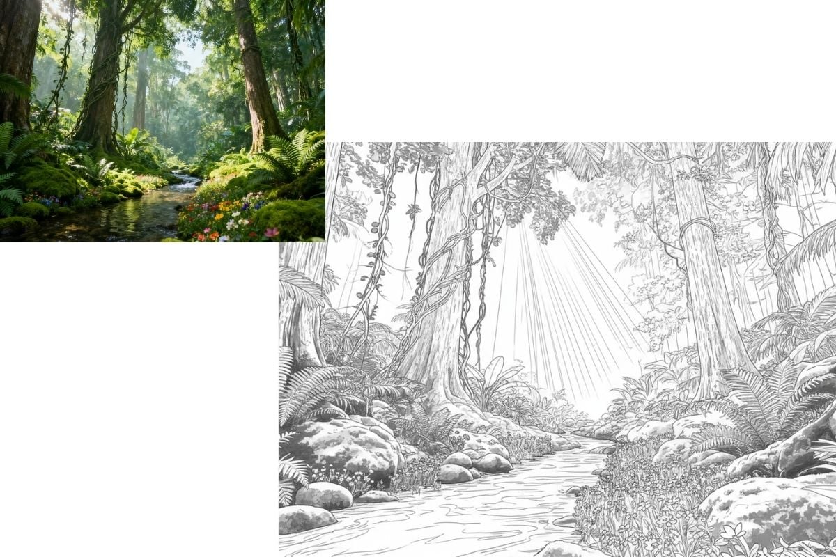 Our AI algorithm automatically processes your image, identifying key edges and contours to transform it into a clean line drawing in seconds.