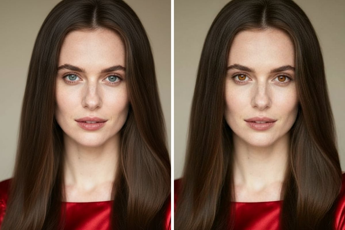 我们重视原片的完整度。AI 仅对瞳色进行针对性调整,肌理、肤色、光影与环境细节均保持不变。