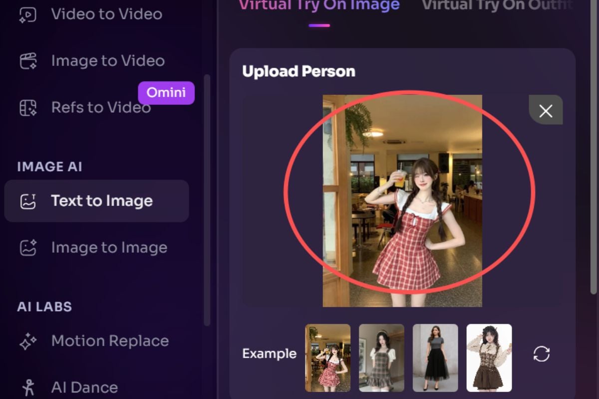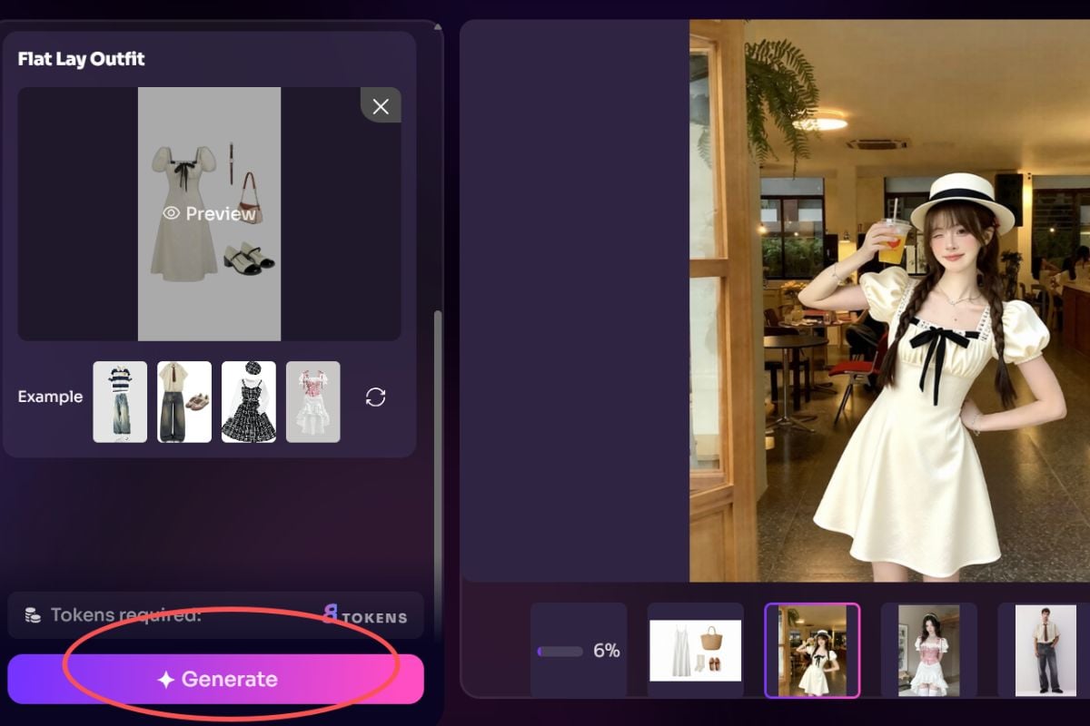 當您希望在試穿步驟後獲得更多服裝概念、替代場景或更乾淨的時尚視覺效果時,可與我們的AI 圖像生成器一起使用。